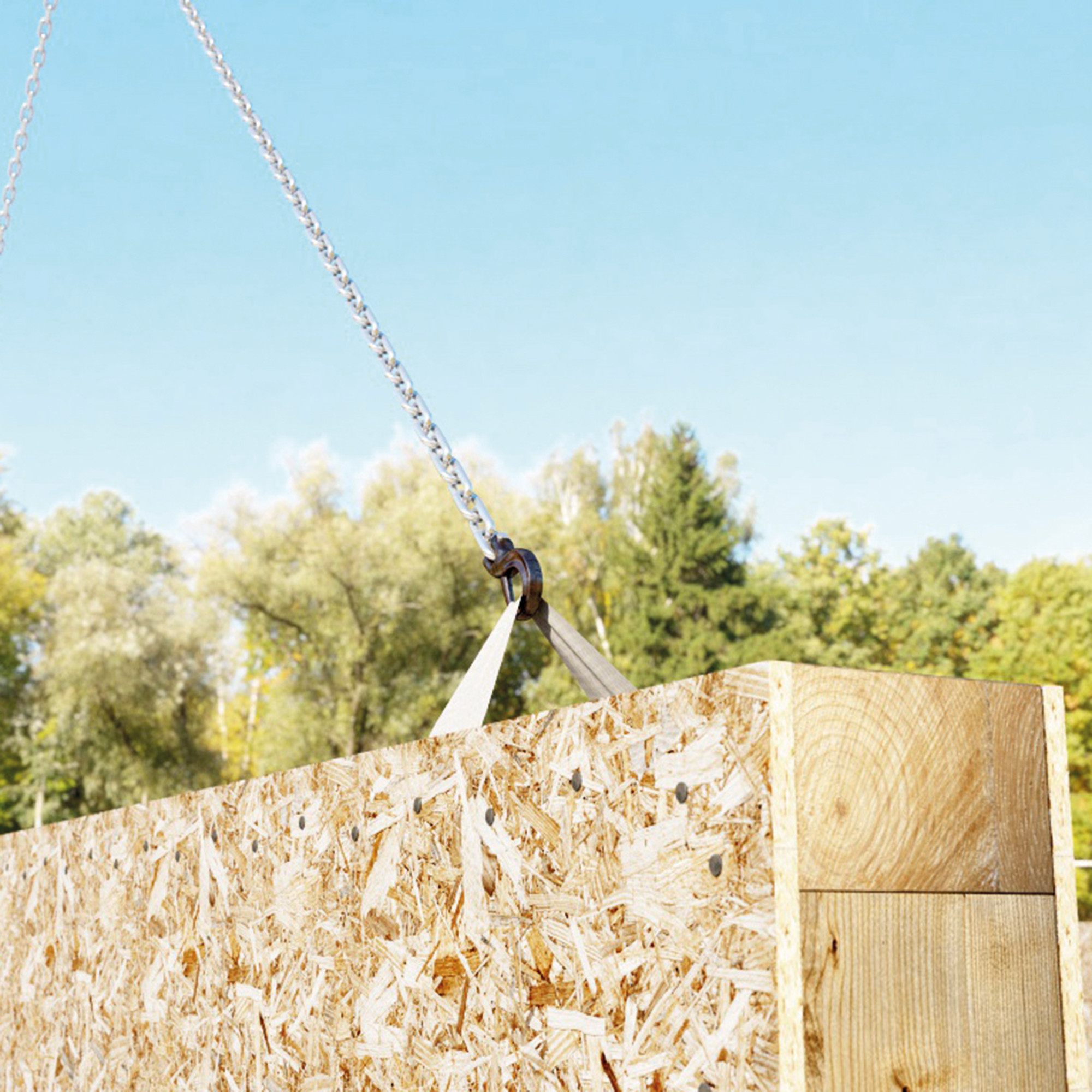 MANTIS , la cinghia per il sollevamento e trasporto di elementi in legno.