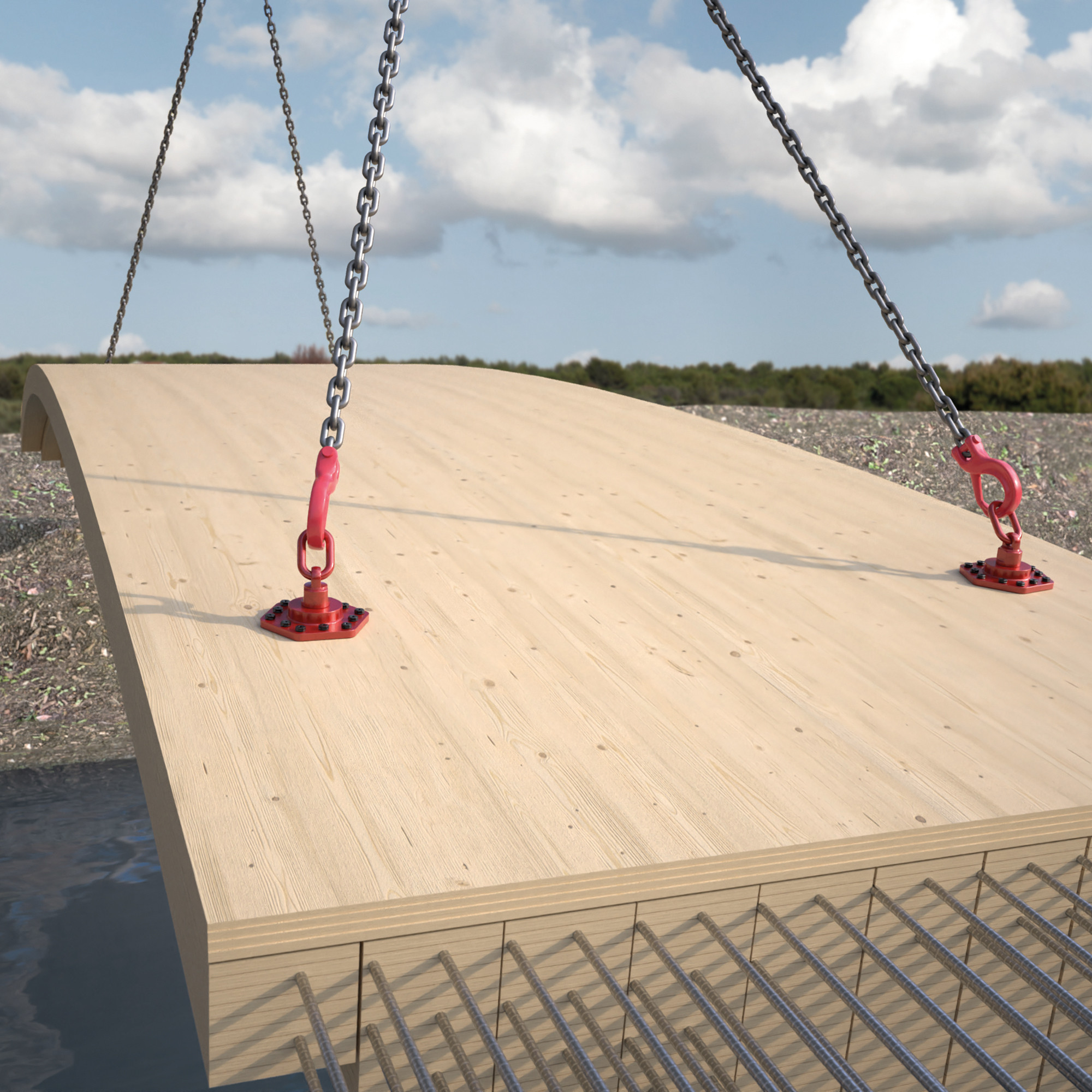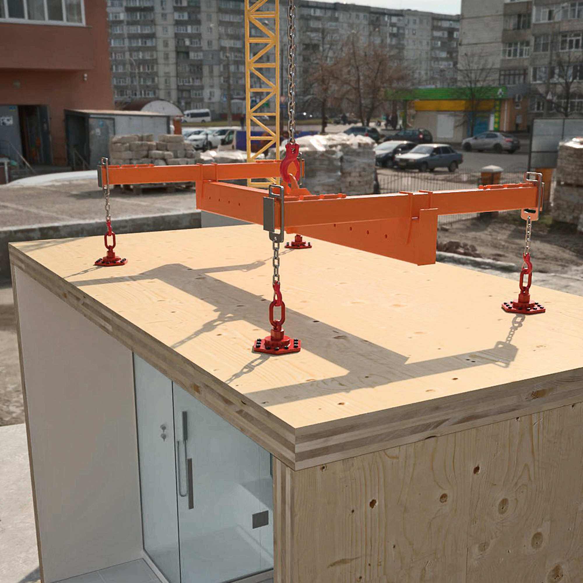 Il gancio di sollevamento integrato è orientabile, permettendo l’aggancio da qualsiasi direzione senza necessità di allineamento – per una movimentazione efficiente e sicura in cantiere.