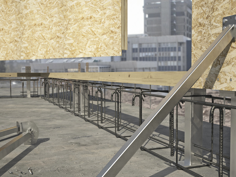 Con UP LIFT è possibile realizzare il cordolo in calcestruzzo armato successivamente alla posa delle pareti in legno, in modo tale da eliminare questi inconvenienti. Il costruttore dell'edificio in legno predispone i supporti UP LIFT sul basamento in calcestruzzo armato e posa le pareti sopra ai supporti. Successivamente al montaggio delle strutture in legno è possibile realizzare il cordolo, che funge da elemento di trasferimento delle sollecitazioni di compressione derivanti dalle pareti.