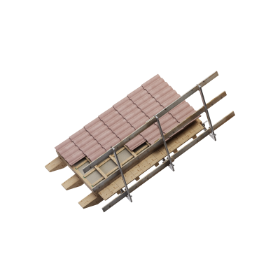 L’interasse massimo tra i supporti è di 1400 mm e lo spessore minimo fissabile varia da 80 a 192 mm. Concepito per installazione su travi in legno.